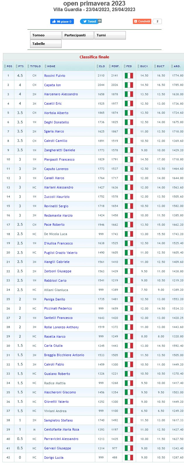 Il torneo ha visto la partecipazione di ben 42 giocatori, che orgogliosamente citiamo come dato statistico di enorme valore, per il nostro Circolo.