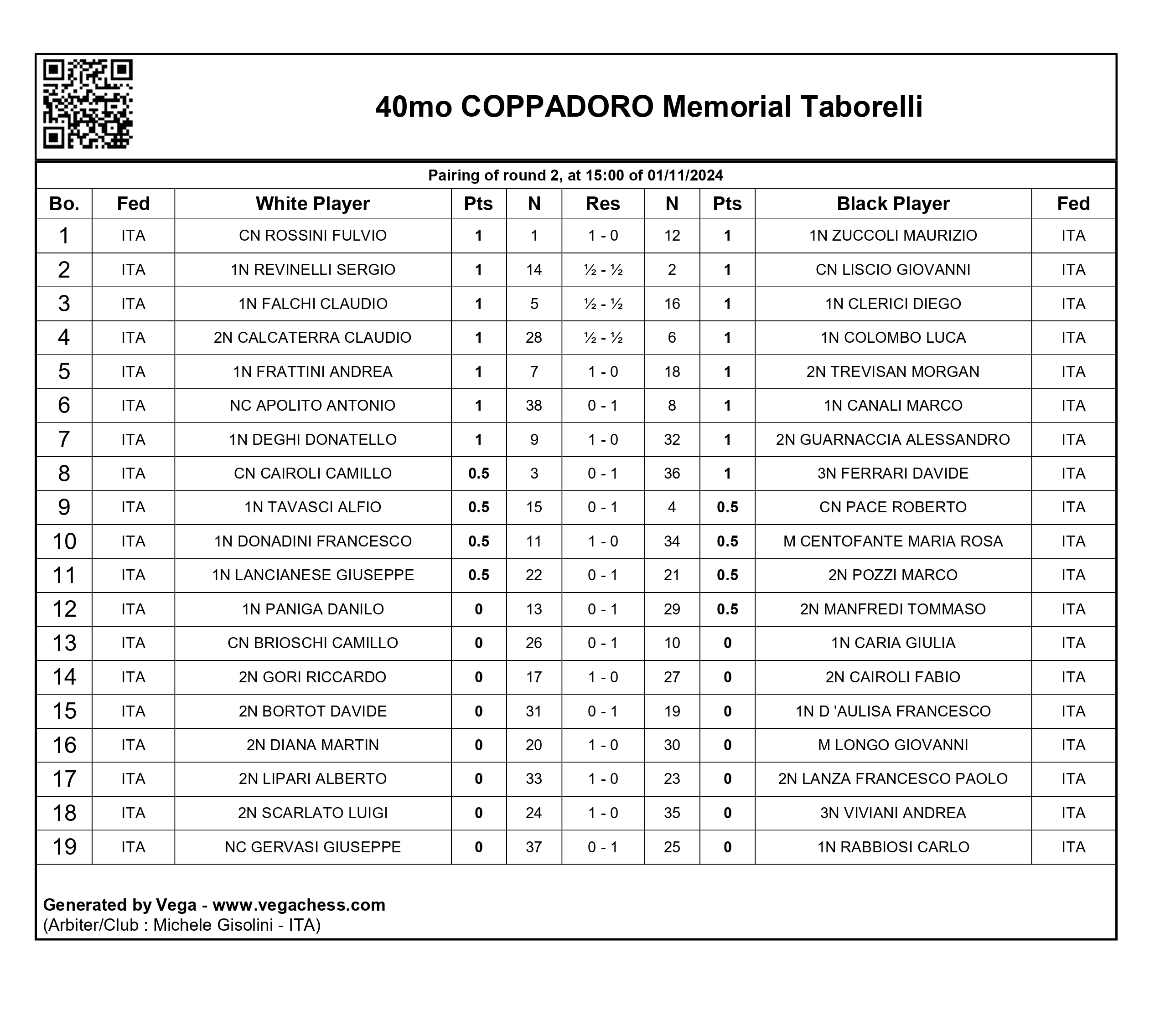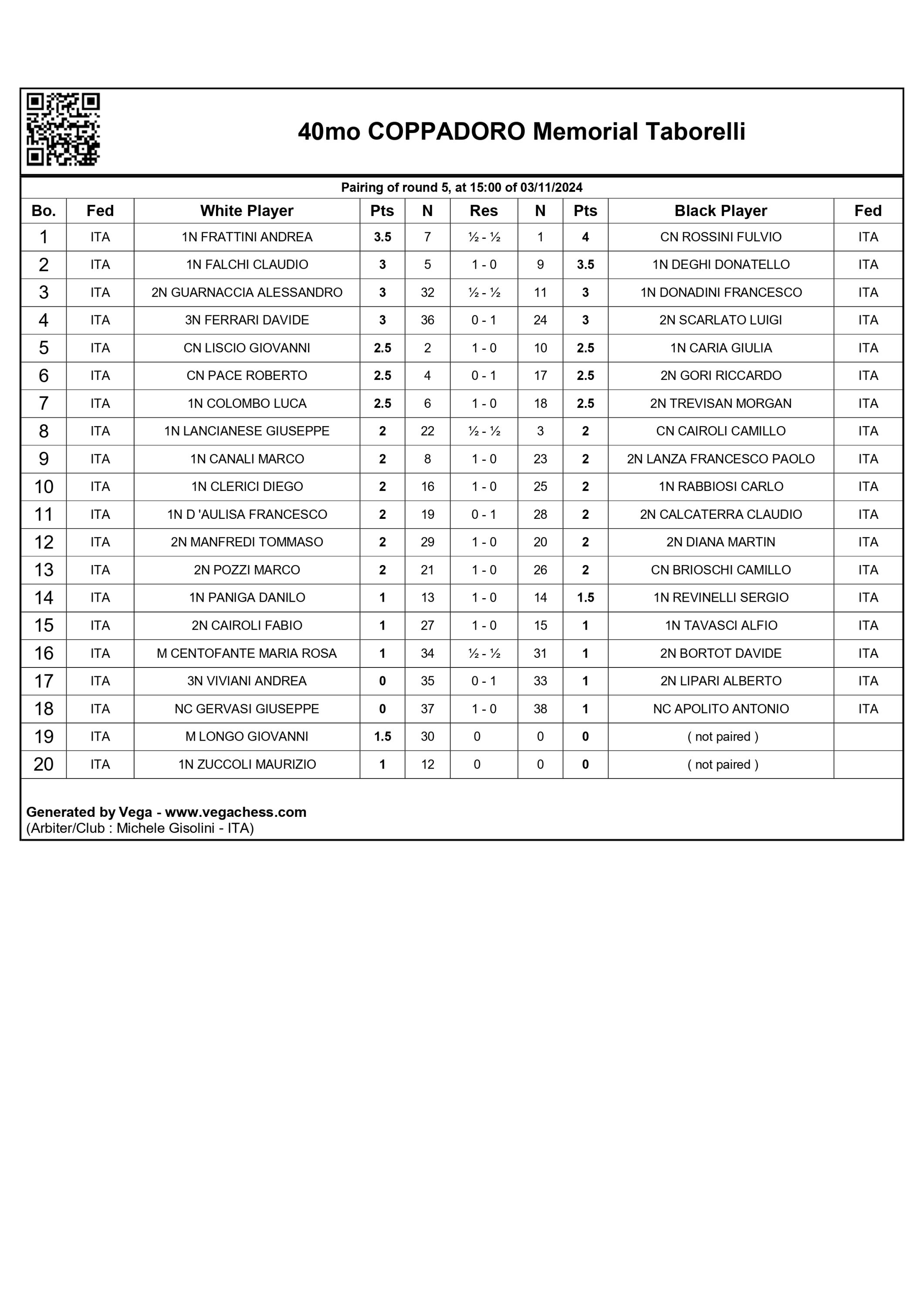 Tutti gli incontri in formato PGN, catalogati per ognuno dei 5 turni di gioco.