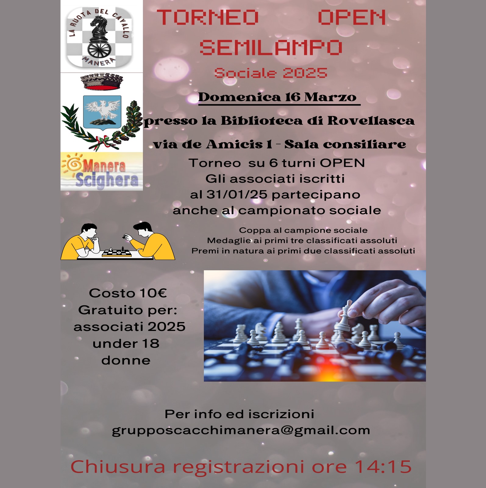 Tutta la popolazione è stata invitata a partecipare. La ASD LA TORRE ha organizzato con il patrocinio del Comune di Uggiate con Ronago, un paio di eventi nel mese di luglio, con scacchiere e orologi regolamentari da torneo. Gli eventi, mirati alla promozione e alla divulgazione di questo meraviglioso sport della mente, offrono la possibilità al pubblico, formato di giovani e di meno giovani, di cimentarsi con i nostri giocatori … allo scopo di farci conoscere tra la popolazione e soprattutto allo scopo di diffondere la bellezza estetica e il divertimento degli scacchi.
