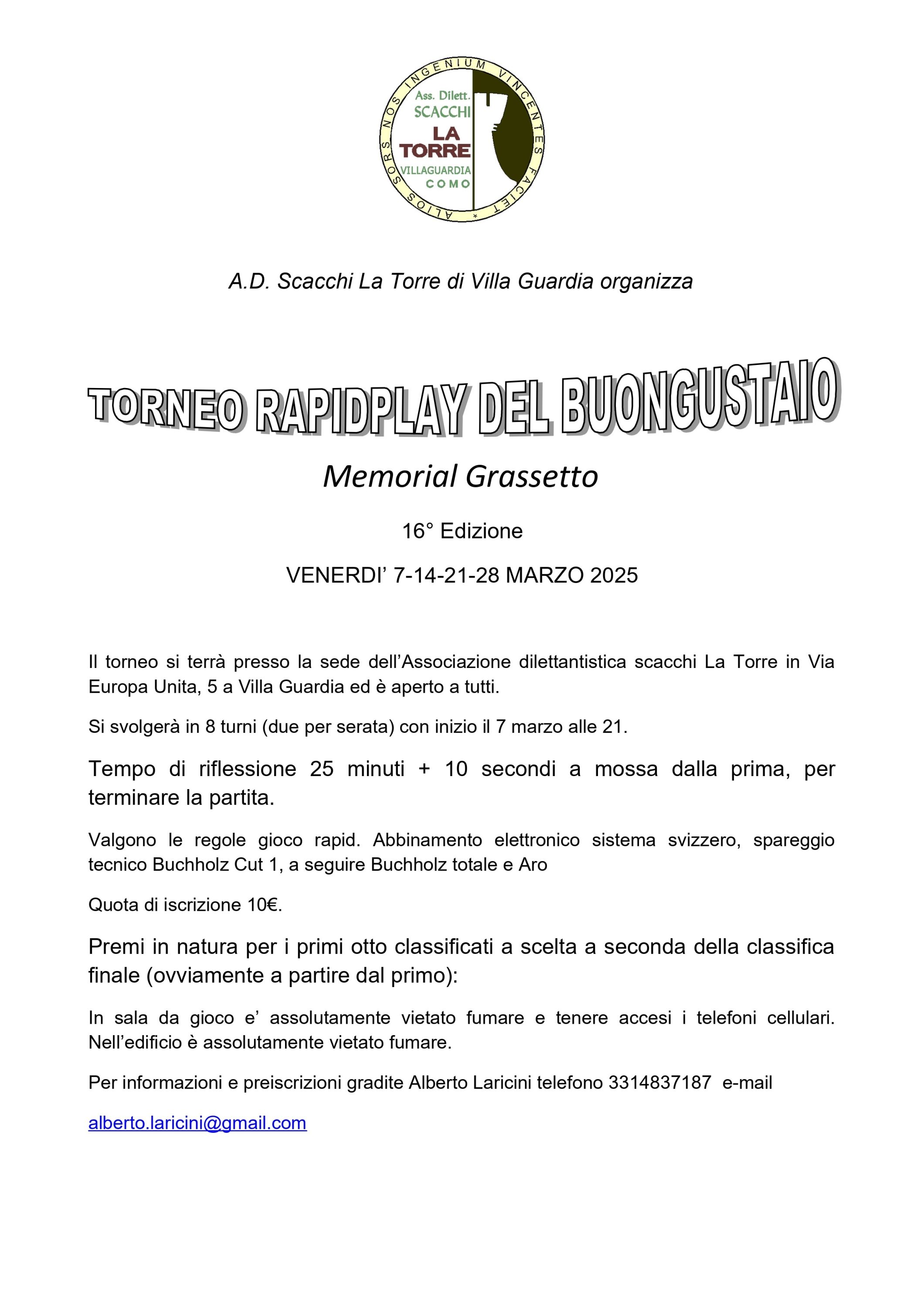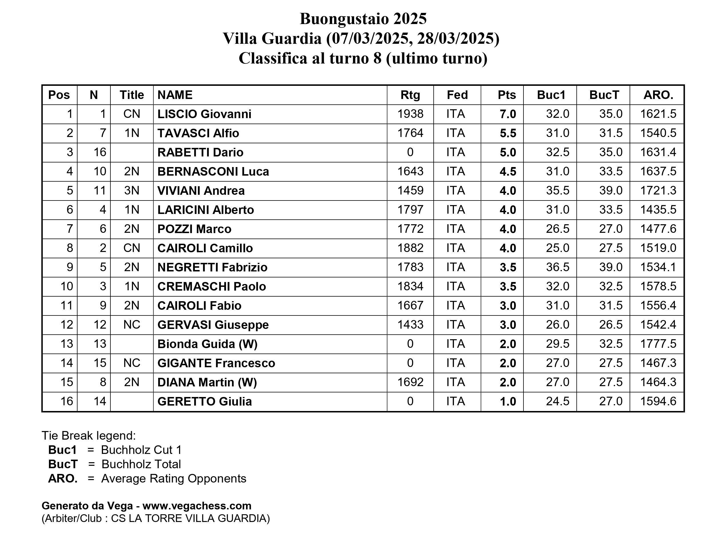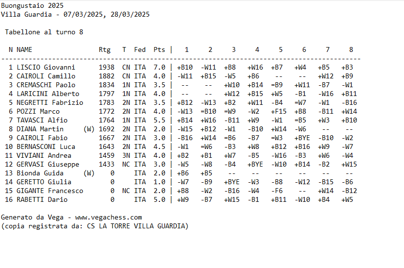 Ecco a voi i risultati finali del grande Torneo Open Primavera 2025
